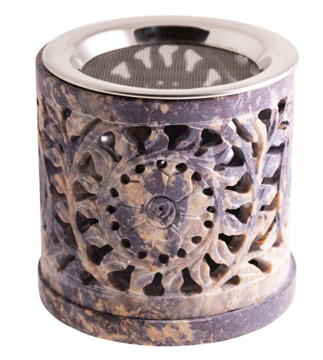 Siebgefäß aus Speckstein in alt orientalischer indischer Kunst hergestellt. Fein von Hand geschnitzt und graviert bringt es einen Hauch des Orients in jedes Ambiente.
