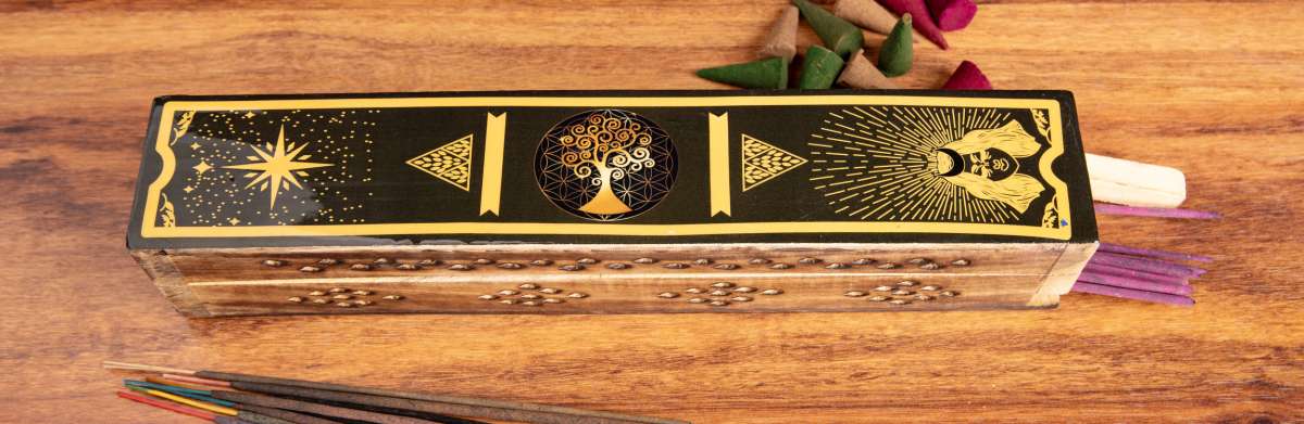 Diese ist sowohl als Vorratsbox, wie auch als Räucherstäbchenhalter nutzbar.