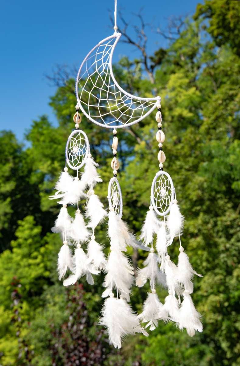 Der Legende nach wurde die Idee des Traumfängers indigenen Indianervölkern Amerikas in Visionen übermittelt. Gesponnen wie das Netz der Spinne, wirkt der Traumfänger wie ein Filter, der negative Gedanken und Träume von den Guten trennt und nur das hindurchlässt, was uns Menschen hilft, den für uns richtigen Weg ungehindert zu verfolgen. Über dem Bett wirkt er als starkes Schutzsymbol, an der Wand befestigt zieht er das Chi an und freischwebend im Raum leitet und verteilt er das Chi.