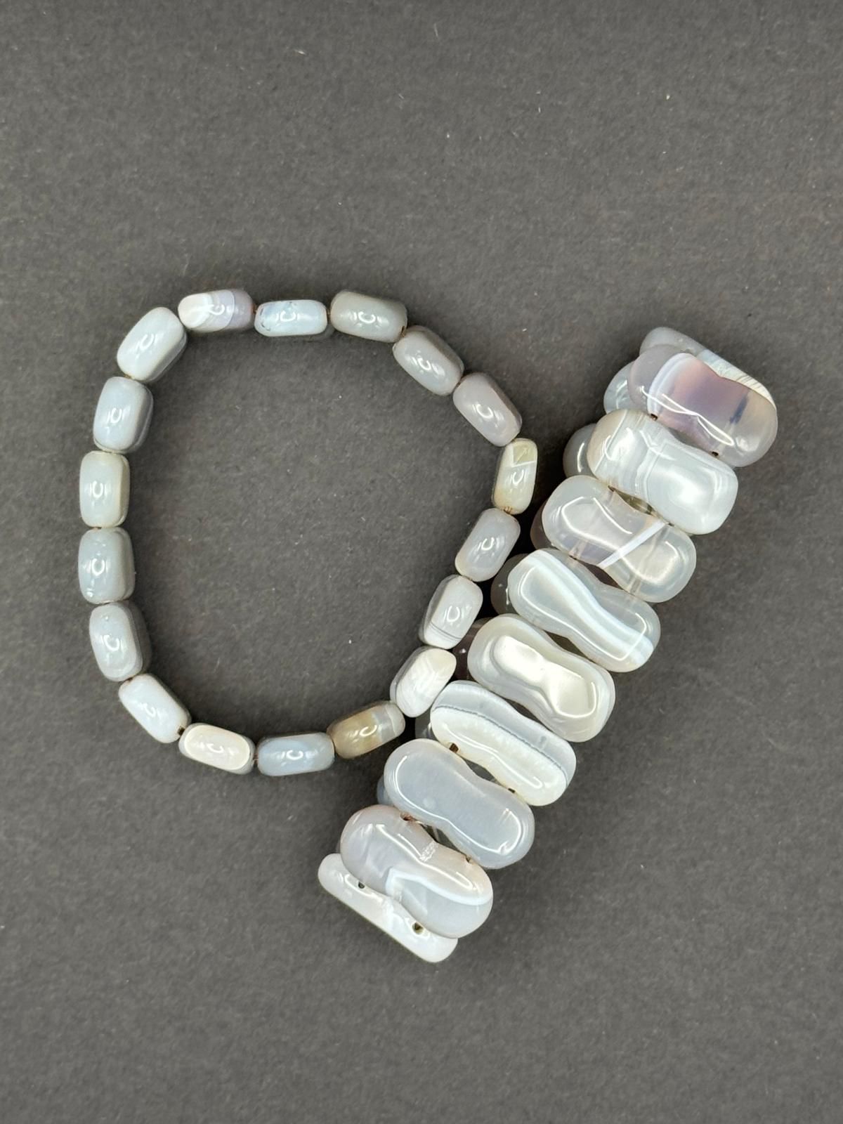 Dieses stilvolle Armband aus naturbelassenen Achat-Perlen im Freeform-Schliff strahlt schlichte Eleganz und ruhige Stärke aus. Die unregelmäßig geformten Steine in zarten Grau- und Creme-Tönen zeigen natürliche Veränderungen – wie feine Linien des Lebens, die sich sanft am Handgelenk anordnen.