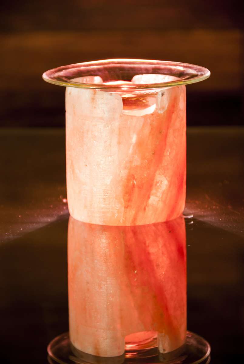 Salzkristall Teelicht Aromalampe mit Glasplatte
