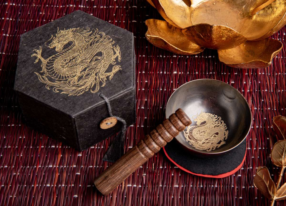 Geliefert wird die Klangschale mit Klangstab, passendem Kissen und in einer detailreich gestalteten Drachenbox – ein wertvolles Set, das sich sowohl für die eigene spirituelle Praxis als auch als außergewöhnliches Geschenk eignet.