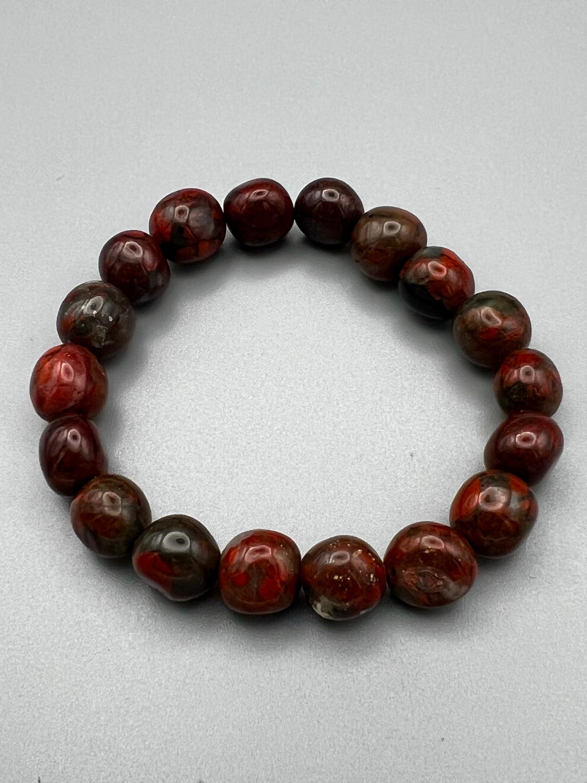 Dieses Armband aus natürlichen Breccienjaspis-Trommelsteinen zeigt intensive Rot- und Brauntöne, durchzogen von einzigartigen Strukturen. Jede Perle ist ein von der Natur geschaffenes Unikat, das die kraftvolle Ausstrahlung dieses besonderen Jaspis einfängt.