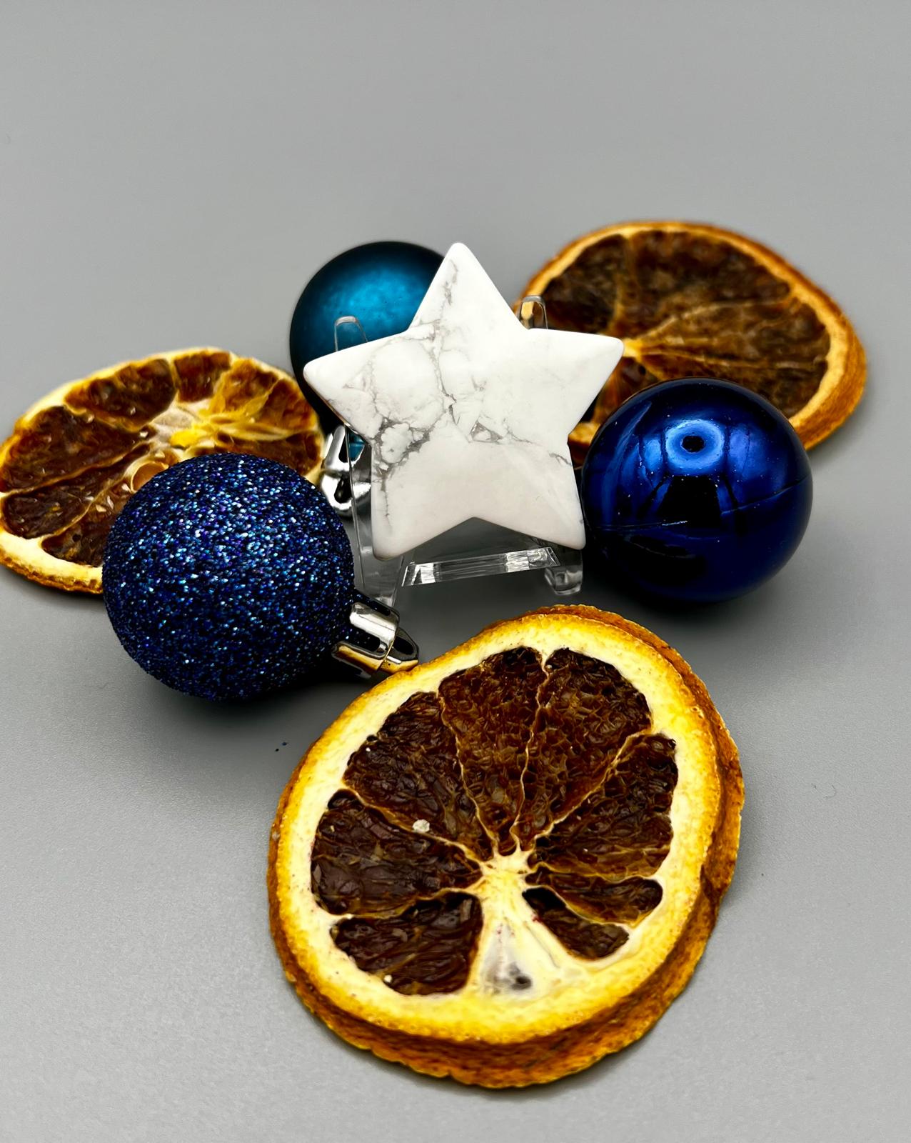Howlith gilt als Stein der Gelassenheit und inneren Ruhe . Er hilft, Stress und Anspannung loszulassen, fördert Geduld und unterstützt einen erholsamen Schlaf. In Form eines Sterns erinnert er zusätzlich an Hoffnung, Licht und Orientierung.