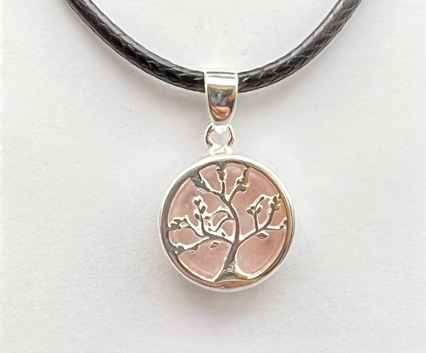 xLebensbaum-Anhänger mit Rosenquarz – Liebe & Harmonie