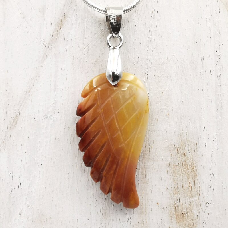 Dieser liebevoll gearbeitete Flügel Anhänger aus Edelstein steht für Schutz, Führung und die Verbindung zwischen Himmel und Erde. Die detailreiche Flügelform symbolisiert Leichtigkeit, Vertrauen und das Gefühl, getragen zu sein. Durch die natürliche Maserung und Farbgebung ist jeder Anhänger ein Unikat mit eigener Ausstrahlung.